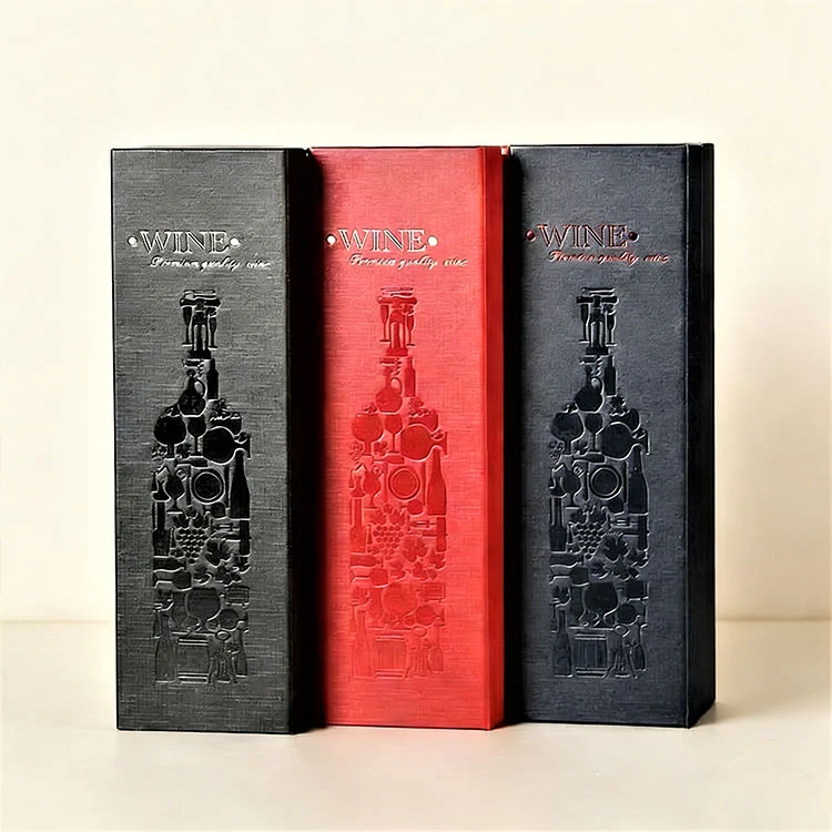 Bonnie Craftが提供するワイン包装箱は高品質の素材で作られており、さまざまなワイン包装のニーズに適しています。マットクラフト板紙、木目調コーティングハードボード、または高級模造レザーからお選びいただけます。それぞれの原材料は強度と美しさのバランスを考慮して慎重に選択されています。これにより、ワインのハイエンドな位置が確保され、ボトルがしっかりと保護され、輸送中や保管中の損傷を防ぎます。